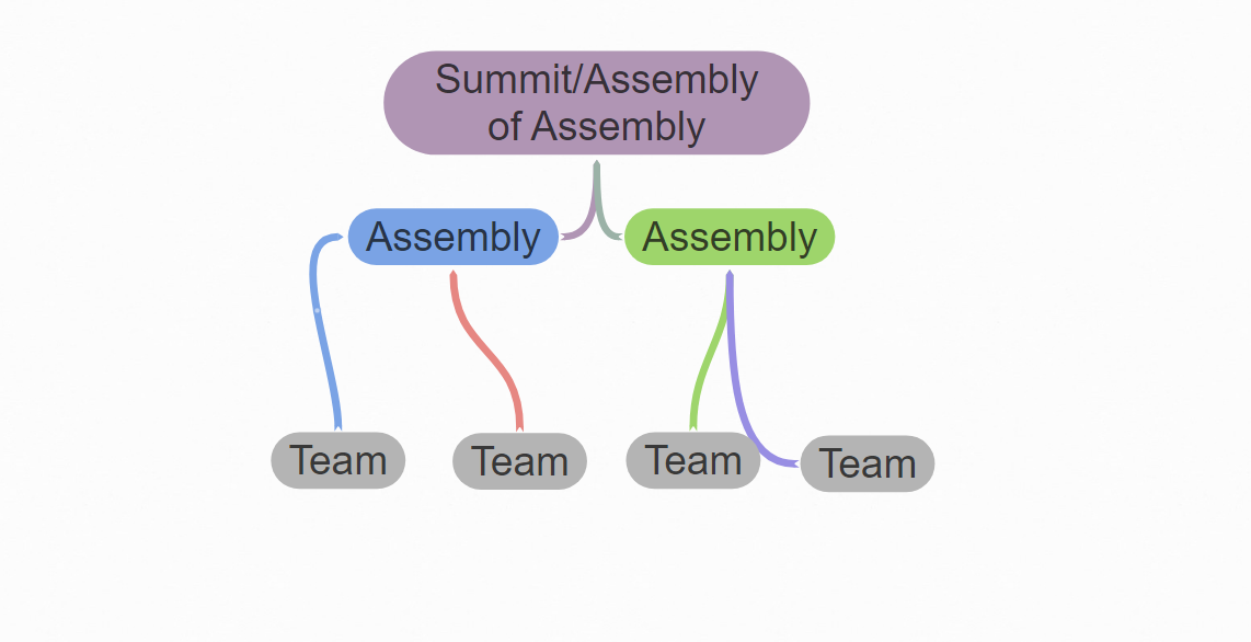 - Assemblies/summits are multiple teams (or their delegates) coming together for shared interests.